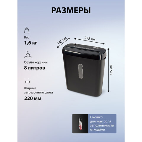 Уничтожитель (шредер) CACTUS CS-SH-A1, 2 уровень секретности, полоски 6 мм, 6 листов, корзина 8 литров