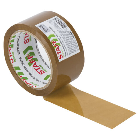 Упаковочная клейкая лента STAFF активно используется в торговле, промышленности, быту и подходит для оперативной упаковки с помощью диспенсера или вручную.