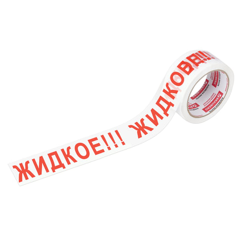 Клейкая лента упаковочная, 48 мм х 66 м, белая, надпись "ЖИДКОЕ!!!", 45 микрон, BRAUBERG, 440127