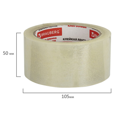 Упаковочная клейкая лента BRAUBERG активно используется в торговле, промышленности, быту и подходит для оперативной упаковки с помощью диспенсера или вручную. Отличается высокой адгезией клея (слипанием с поверхностью) и стойкостью к разрыву.