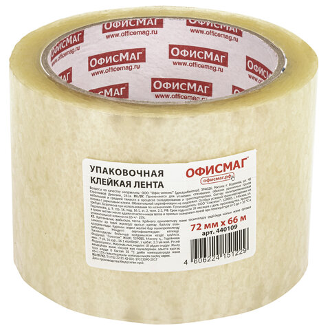 Упаковочная клейкая лента ОФИСМАГ предназначена для упаковки, применяется в торговле, промышленности, быту. С ее помощью можно склеить практически любые предметы: картонные коробки, упаковочную пленку, бумагу и т. д.