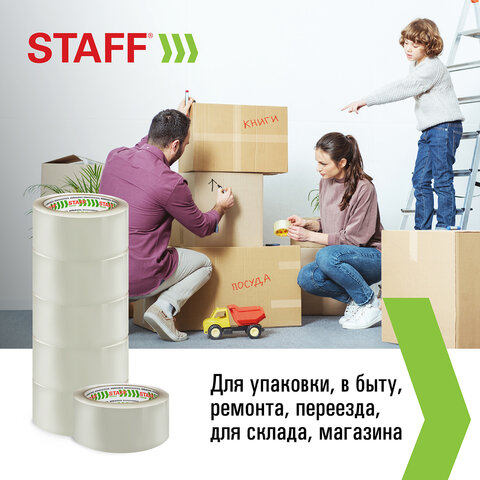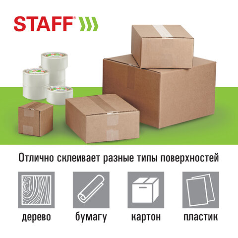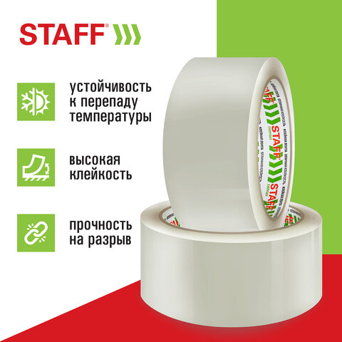 Упаковочная клейкая лента STAFF активно используется в торговле, промышленности, быту и подходит для оперативной упаковки с помощью диспенсера или вручную. Отличается высокой адгезией клея (слипанием с поверхностью) и стойкостью к разрыву.
