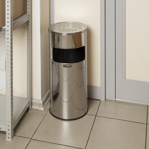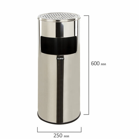 Урна с пепельницей 27 литров, 600х250 мм, нержавеющая сталь, зеркальная, LAIMA PROFESSIONAL, 606299