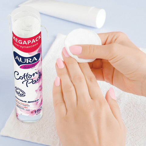 Ватные диски КОМПЛЕКТ 150 шт., AURA, двусторонние, 7185