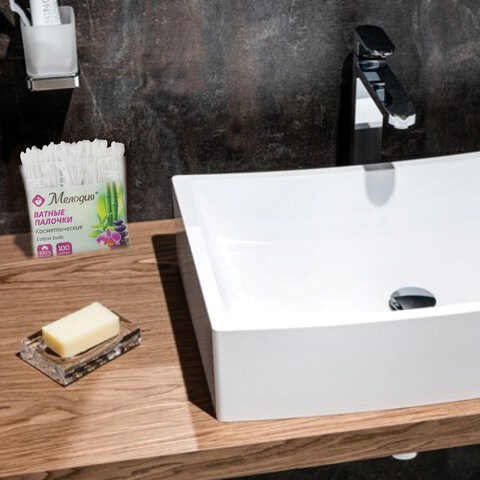 Ватные палочки КОМПЛЕКТ 100 шт., МЕЛОДИЯ, полиэтиленовый пакет, 128854