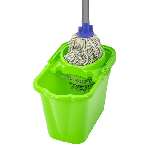 Ведро 9,5 л для уборки КОМПЛЕКТ с ОТЖИМОМ (сетчатый) пластик, для веревочных и ленточных МОПов, IDEA, М 2421