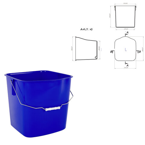 Ведро УНИВЕРСАЛЬНОЕ 25 л, СИНЕЕ, подходит для уборочных тележек, уборки, хранения, пластик, 609756, 25EC/6