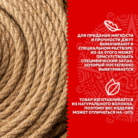 Веревка (канат) джутовая для рукоделия, декоративная, длина 24 м, d=8 мм, ОСТРОВ СОКРОВИЩ, 607949