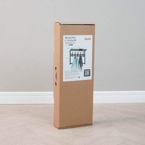Вешалка настенная с полкой 2 яруса "Торонто-22", 585х670х270 мм, 9 крючков, металл, черная, ВСПТ22 Ч