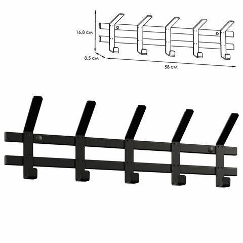 Вешалка настенная "Торонто-5", 168х580х85 мм, 5 крючков, металл, черная, ВНТ5 Ч