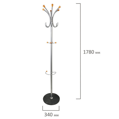 Вешалка-стойка BRABIX "CR-8121" на мраморном диске, металл, 6+4 крючка, цвет серебристый, 606437