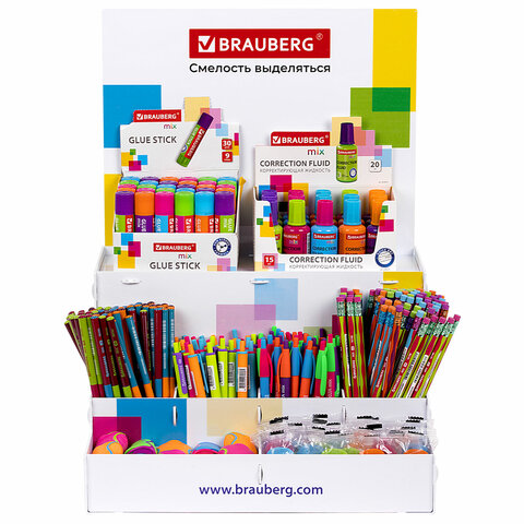 Настольный дисплей для размещения товара серии MIX BRAUBERG обеспечивает эффективный способ выкладки и позволяет выгодно представить продаваемый ассортимент.