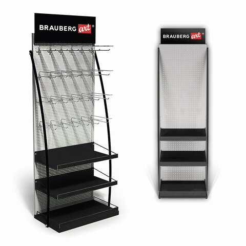 Стойка для размещения товара напольная BRAUBERG ART, 2050x600x500 мм, 35 крючков, 3 полки, металл, 504875