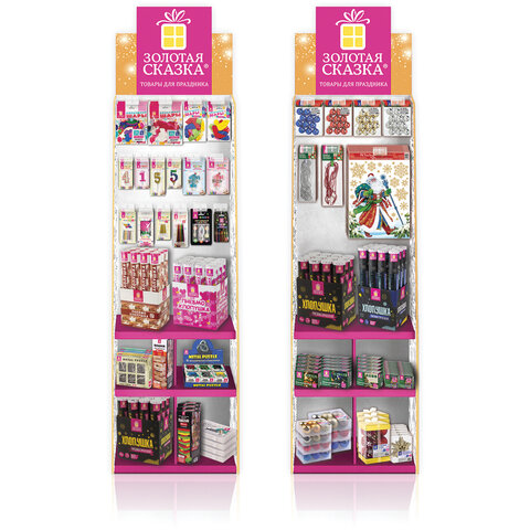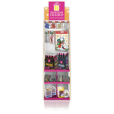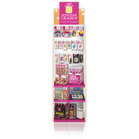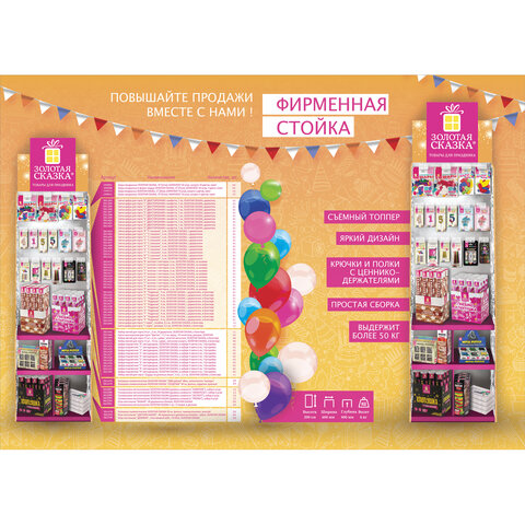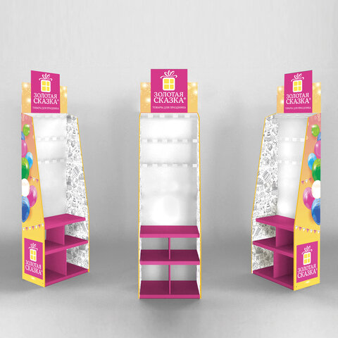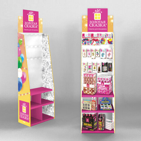 Торговая стойка ЗОЛОТАЯ СКАЗКА идеальна для привлечения внимания к товарам бренда. Яркий дизайн, стильный внешний вид, прочная, простая и удобная конструкция - стойка не только повысит продажи, но и станет украшением интерьера любого розничного магазина.