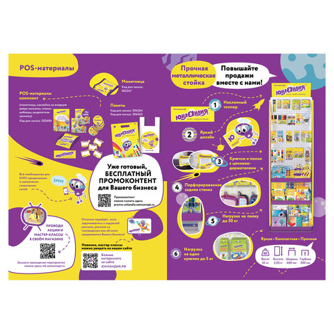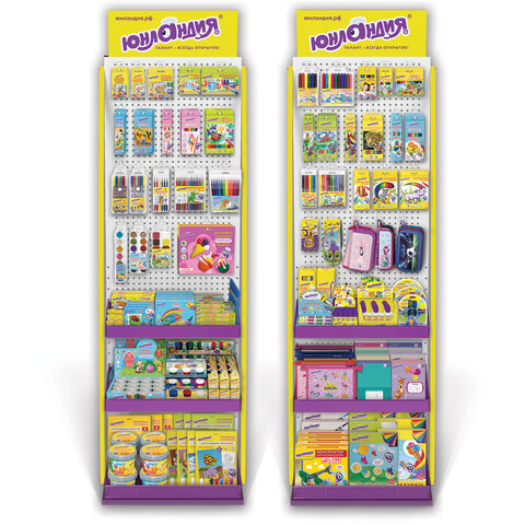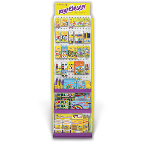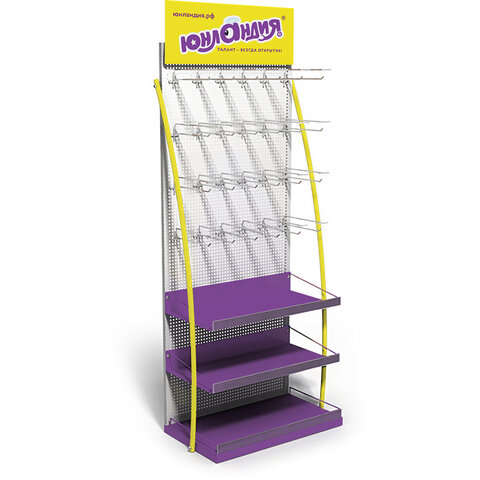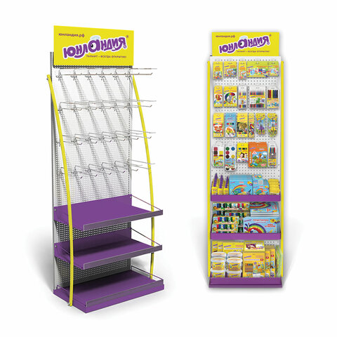 Стильная и вместительная фирменная стойка ЮНЛАНДИЯ позволит выгодно разместить продаваемый ассортимент и повысить объем продаж.