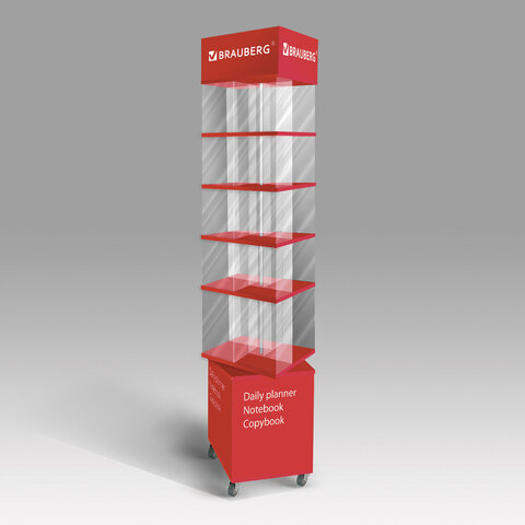 Стильная и вместительная фирменная стойка под ежедневники BRAUBERG позволит выгодно демонстрировать товары для планирования, чтобы клиенту было удобно выбрать из предложенного.