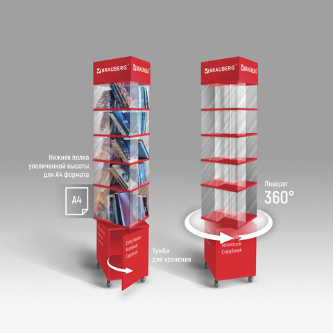 Стойка поворотная, мобильная для ежедневников, блокнотов, тетрадей, BRAUBERG, 211х40х40 см, ЛДСП, 504951