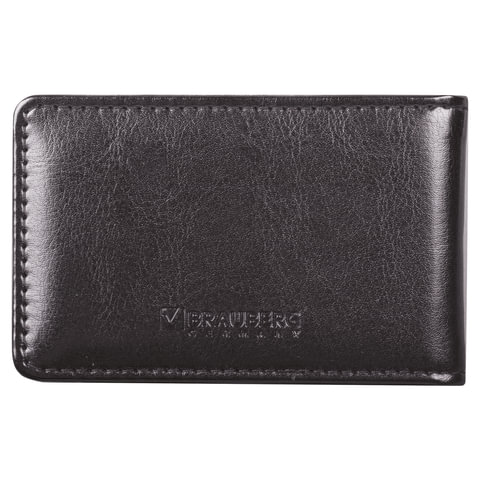 Визитница однорядная BRAUBERG "Imperial", на 20 визиток, под гладкую кожу, черная, 232291