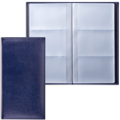 Визитница трехрядная BRAUBERG "Imperial", на 144 визитки, под гладкую кожу, темно-синяя, 232064