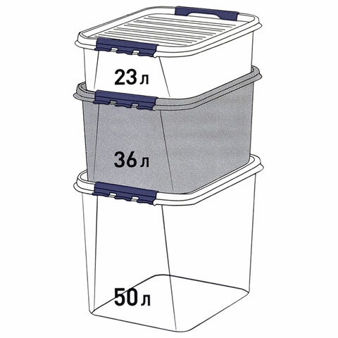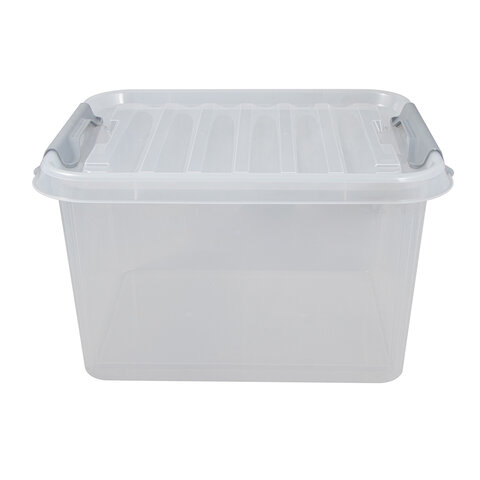 Ящик-контейнер 36 л с КРЫШКОЙ НА ЗАЩЕЛКАХ "ПРОФИ", 29х50х39 см штабелируемый, ПРОЧНЫЙ, прозрачный, 437950000