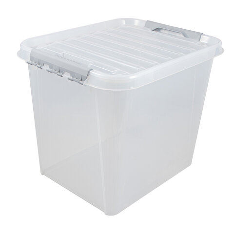 Ящик-контейнер 50 л с КРЫШКОЙ НА ЗАЩЕЛКАХ "ПРОФИ", 40х50х39 см, штабелируемый, ПРОЧНЫЙ, прозрачный, 437960000