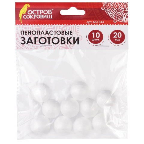 Пенопластовые заготовки для творчества "Шарики", 10 шт., 20 мм, ОСТРОВ СОКРОВИЩ, 661344