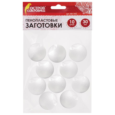 Пенопластовые заготовки для творчества "Шарики", 10 шт., 30 мм, ОСТРОВ СОКРОВИЩ, 661342