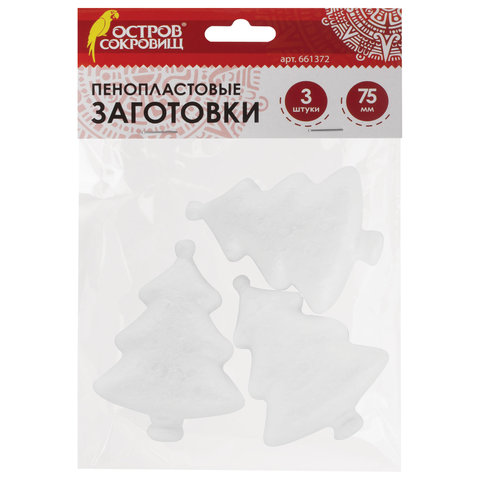 Пенопластовые заготовки для творчества "Ёлочки", 3 шт., 75 мм, ОСТРОВ СОКРОВИЩ, 661372