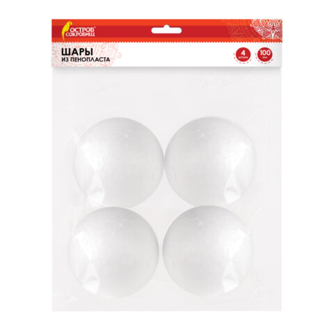 Шары из пенопласта, 100 мм, 4 шт., ОСТРОВ СОКРОВИЩ, 665369