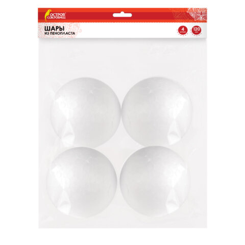 Шары из пенопласта, 120 мм, 4 шт., ОСТРОВ СОКРОВИЩ, 665370