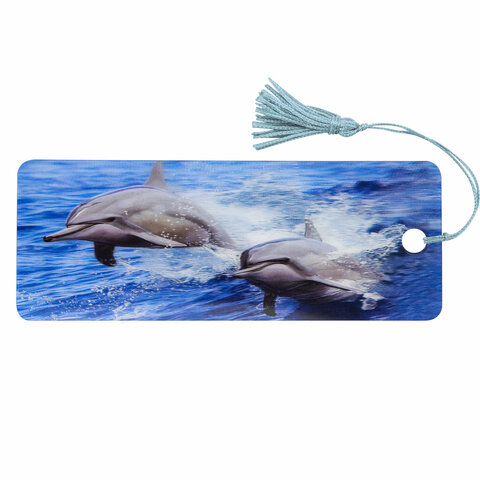 Оригинальная и практичная закладка BRAUBERG с объемным изображением дельфинов незаменима для всех, кто любит читать. Подойдет также для ведения ежедневников.