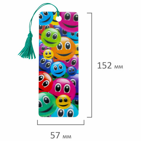 Закладка для книг с линейкой 3D-ОБЪЕМНАЯ BRAUBERG, "Смайлики", с декоративным шнурком, 128096