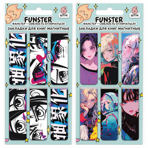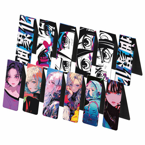 Закладки для книг МАГНИТНЫЕ, "АНИМЕ", комплект 12 штук, 60x20 мм, FUNSTER (ФАНСТЕР), 116655