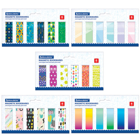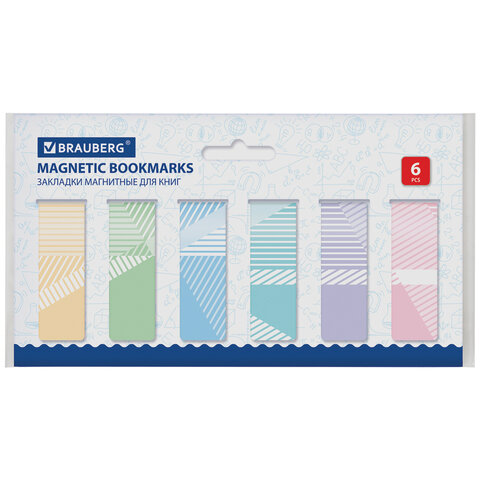 Закладки для книг МАГНИТНЫЕ, "GEOMETRY", набор 30 шт., 60x20 мм, BRAUBERG, 113177