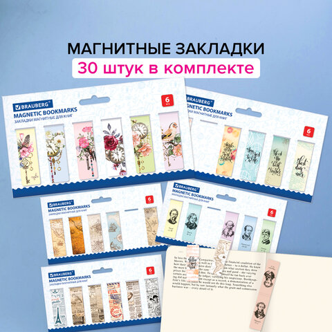Закладки для книг МАГНИТНЫЕ, "MIX 2", набор 30 шт., 60x20 мм, BRAUBERG, 113178