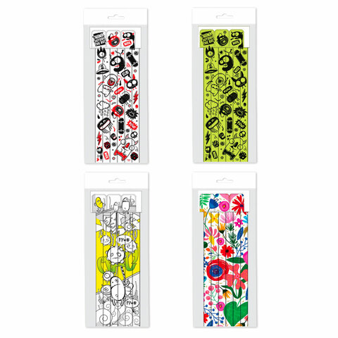 Закладки для книг с принтами САМОКЛЕЯЩИЕСЯ, КОМПЛЕКТ 6 шт., рисунки ассорти, 2921.АС/6
