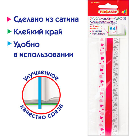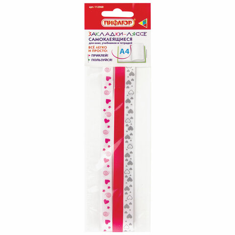 Закладки-ляссе ПИФАГОР "LOVE" - одни из самых удобных закладок для учебников, школьных пособий, книг, тетрадей и т.д., сочетающие в себе как практическую, так и декоративную функции.