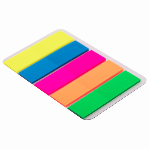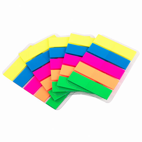 Закладки клейкие неоновые BRAUBERG, 45х12 мм, 500 штук (5 цветов х 20 листов, КОМПЛЕКТ 5 штук), 112442
