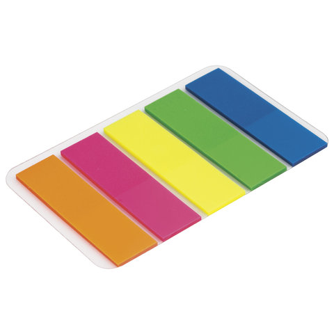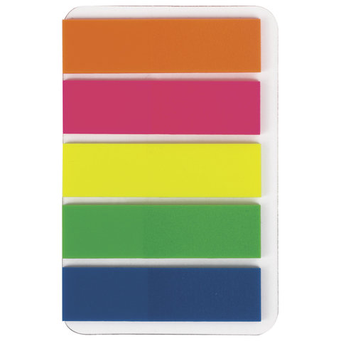 Закладки клейкие неоновые BRAUBERG, 45х12 мм, 100 штук (5 цветов х 20 листов), на пластиковом основании, 122706