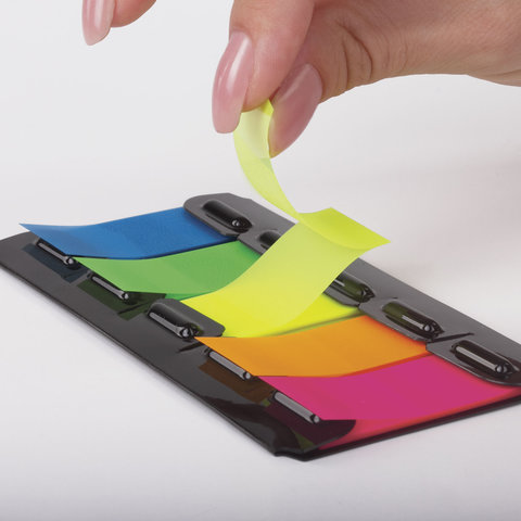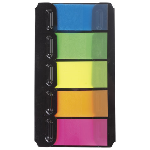 Закладки клейкие неоновые BRAUBERG, 48х20 мм, 100 штук (5 цветов х 20 листов), в пластиковом диспенсере, 122733