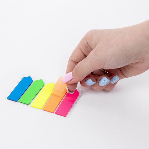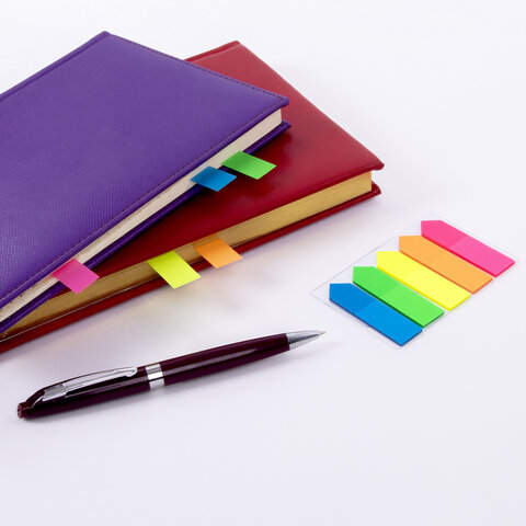 Яркие пластиковые полупрозрачные закладки BRAUBERG в форме стрелок акцентируют внимание на важных страницах книги, журнала, каталога и др.