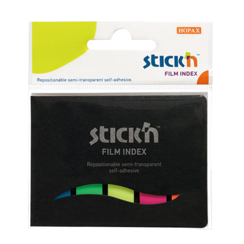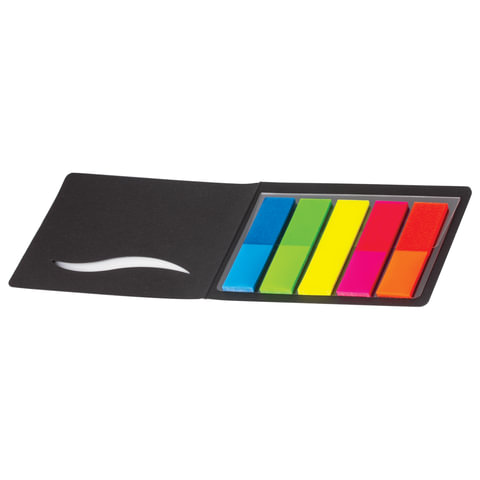 Закладки клейкие HOPAX НЕОНОВЫЕ, пластиковые, 12х45 мм, 5 цветов х 25 листов, в обложке, европодвес, 21076