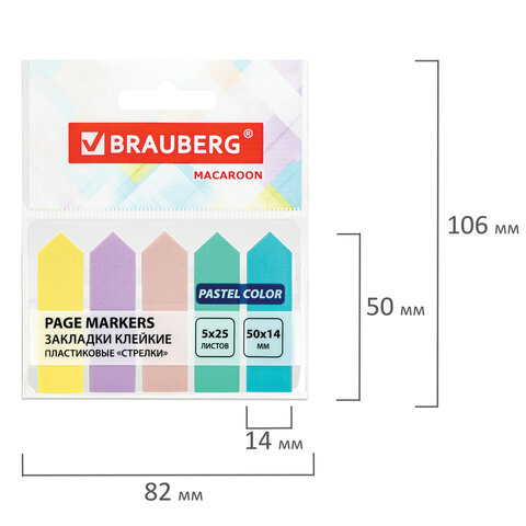 Закладки клейкие пастельные BRAUBERG MACAROON "СТРЕЛКИ" 50х14 мм, 125 штук (5 цветов х 25 листов), 115211