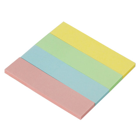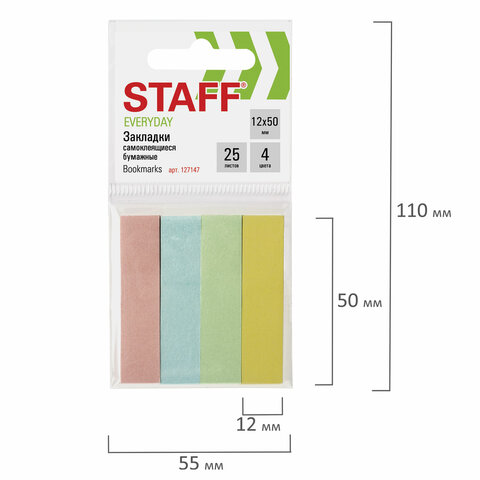 Закладки клейкие пастельные STAFF бумажные, 50х12 мм, 100 штук (4 цвета х 25 листов), европодвес, 127147
