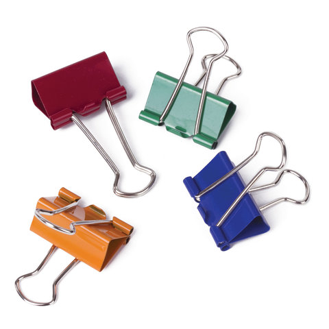 Зажимы для бумаг ОФИСМАГ, КОМПЛЕКТ 12 шт., 25 мм, на 100 листов, цветные, картонная коробка, 226764