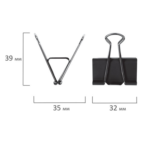 Зажимы для бумаг ОФИСМАГ, КОМПЛЕКТ 12 шт., 32 мм, на 140 листов, черные, картонная коробка, 222089