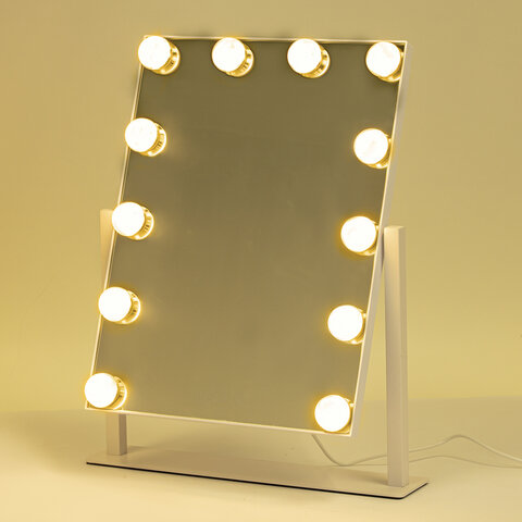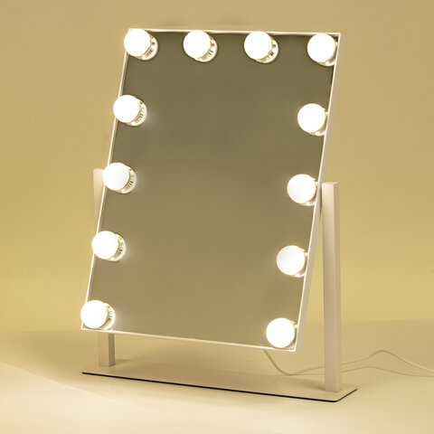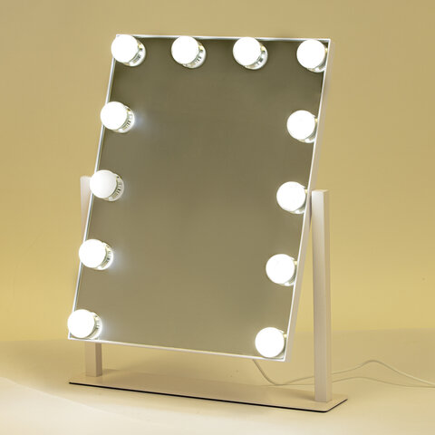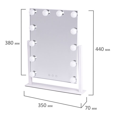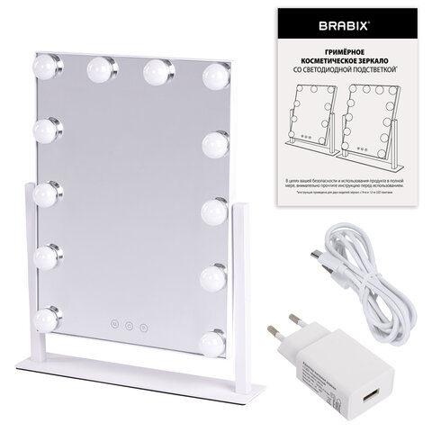 Зеркало для макияжа гримерное с подсветкой, 12 LED-ламп, 3 режима свечения, размер 29х38 см, работа от сети 220V, цвет белый, BRABIX, 609336