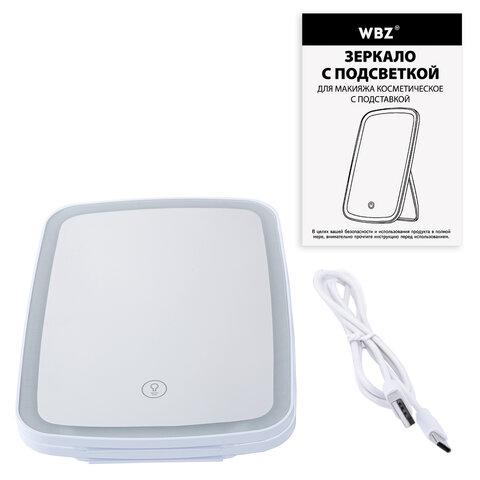 Зеркало настольное с LED-подсветкой для макияжа, 24х17 см, 3 режима свечения, аккумулятор 800 mAh, цвет белый, WBZ (ВБЗ), 609333