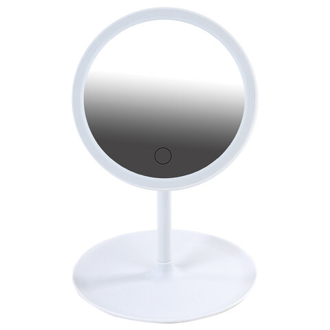Зеркало настольное с LED-подсветкой для макияжа, диаметр 17 см, 3 режима свечения, аккумулятор 800 mAh, цвет белый, WBZ (ВБЗ), 609332