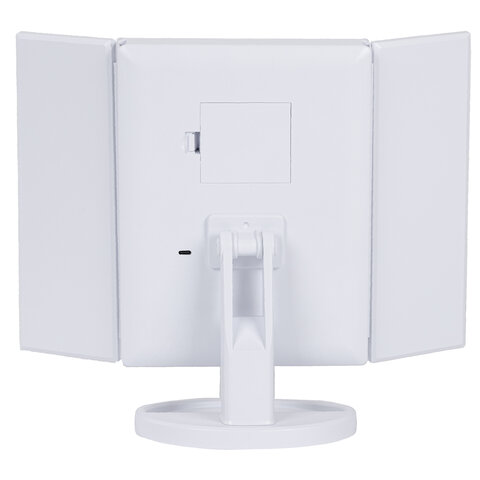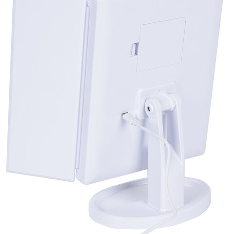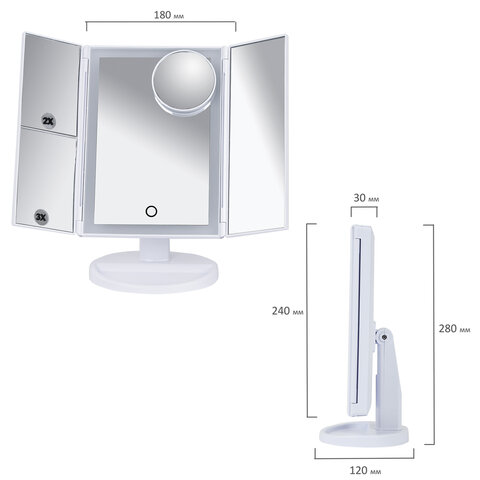 Зеркало настольное с LED-подсветкой для макияжа, размер 24х18 см, складное, увеличение х2, х3, х10, белое, BRABIX, 609337